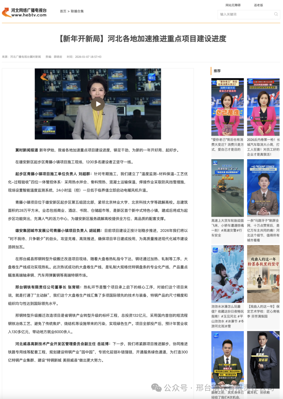 邢臺鋼鐵有限責(zé)任公司董事長 張育明:熱軋環(huán)節(jié)是整個項目承上啟下的核心工序,對咱們這個項目來說,就是打通了“主動脈”,我們這個大盤卷生產(chǎn)線匯集了多項國際領(lǐng)先的技術(shù)與裝備,特鋼產(chǎn)品的尺寸精度和組織均勻性達到國際領(lǐng)先水平。